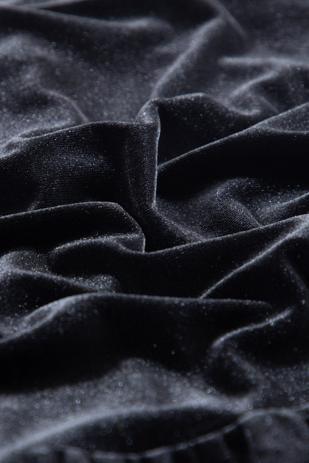 Black Sequin Puff Sleeve Buttoned Velvet Peplum Shirt